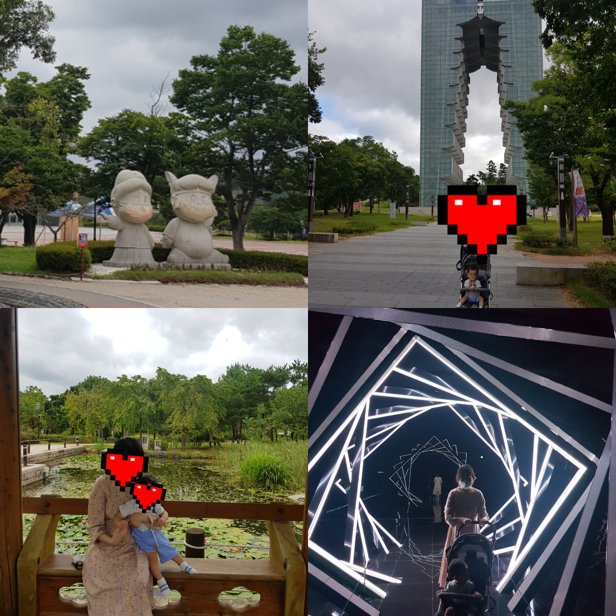 엑스포 통합권으로 솔거 미술관, 전망관 등 내부 시설을 모두 둘러볼 수 있어요! 솔거 미술관의 호수는 100년이 넘었다고 합니다. 엑스포 전체는 넓은 야외라 날이 따듯하고 좋은 날 다녀오시기를 추천합니다. 매표소에서 휴대용 유모차도 빌릴 수 있어요.