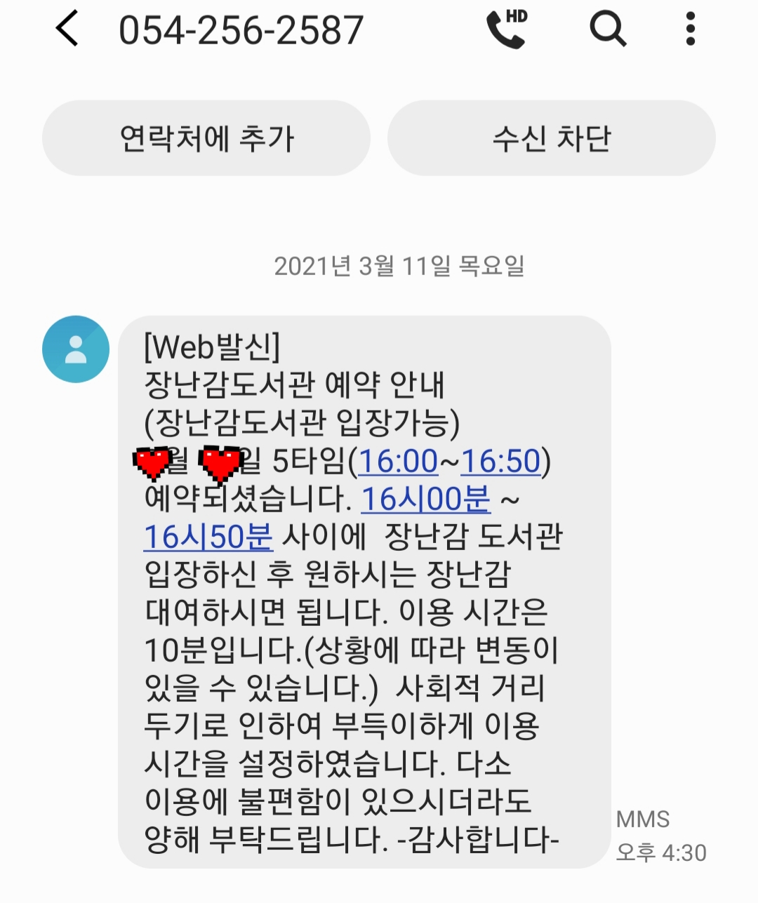 4. 예약한 방문날짜, 시간에 방문해서 대여하면 끝! 대여기간은 3주, 연체시 일할 1000원씩 연체료가 붙음!