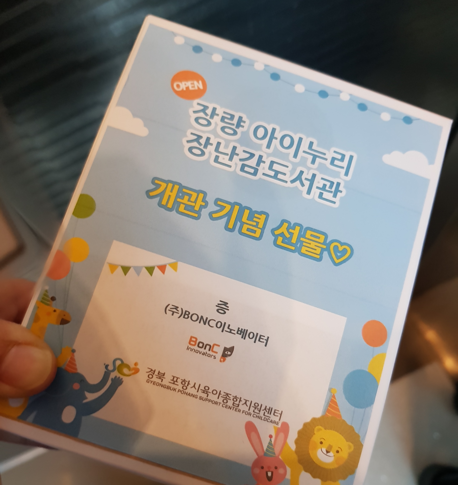 대여를 하니, 최근에 장난감도서관 장량점 오픈을 했다며 기념품을 주셨어요!
