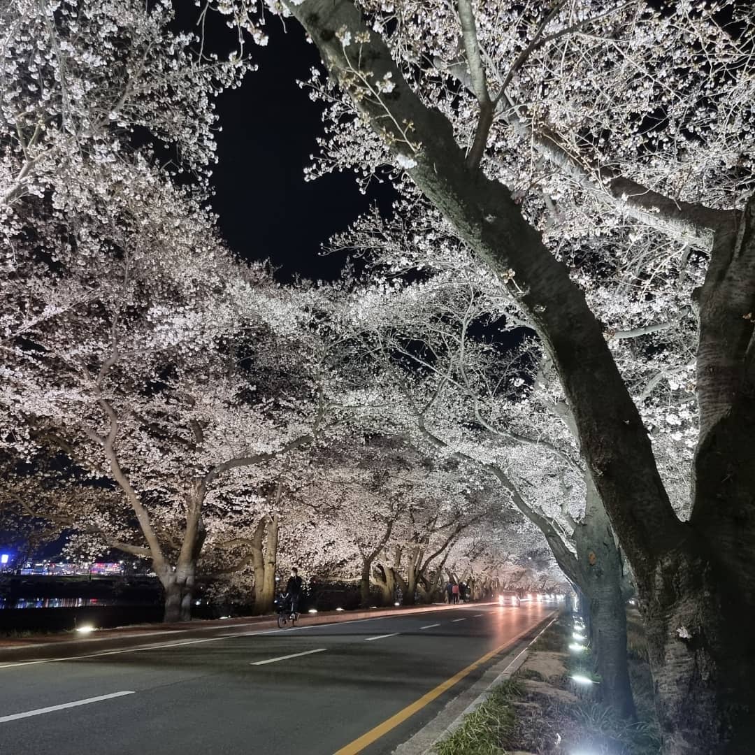 낮에도 예쁘지만 벚꽃은 밤에 보는 것도 분위기 있고 예쁘네요!